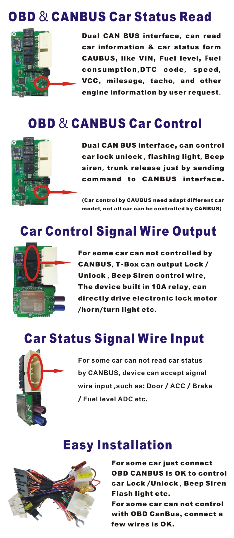 - OBD II CANBUS control car lock / unlock / flashing / horn etc.